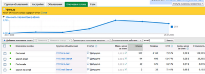 Чтобы просмотреть данные Оптимизатора цены за клик, перейдите на вкладку «Ключевые слова» в своем аккаунте AdWords.