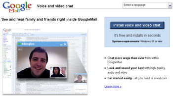 Видео чат находится «прямо внутри Gmail» и как всегда, используются открытые стандарты — XMPP, RTP и H.264. Для общения в видеочате достаточно кликнуть соответствующую иконку около имени пользователя Gmail. Если у собеседников нет камеры, то им доступно лишь голосовое общение.